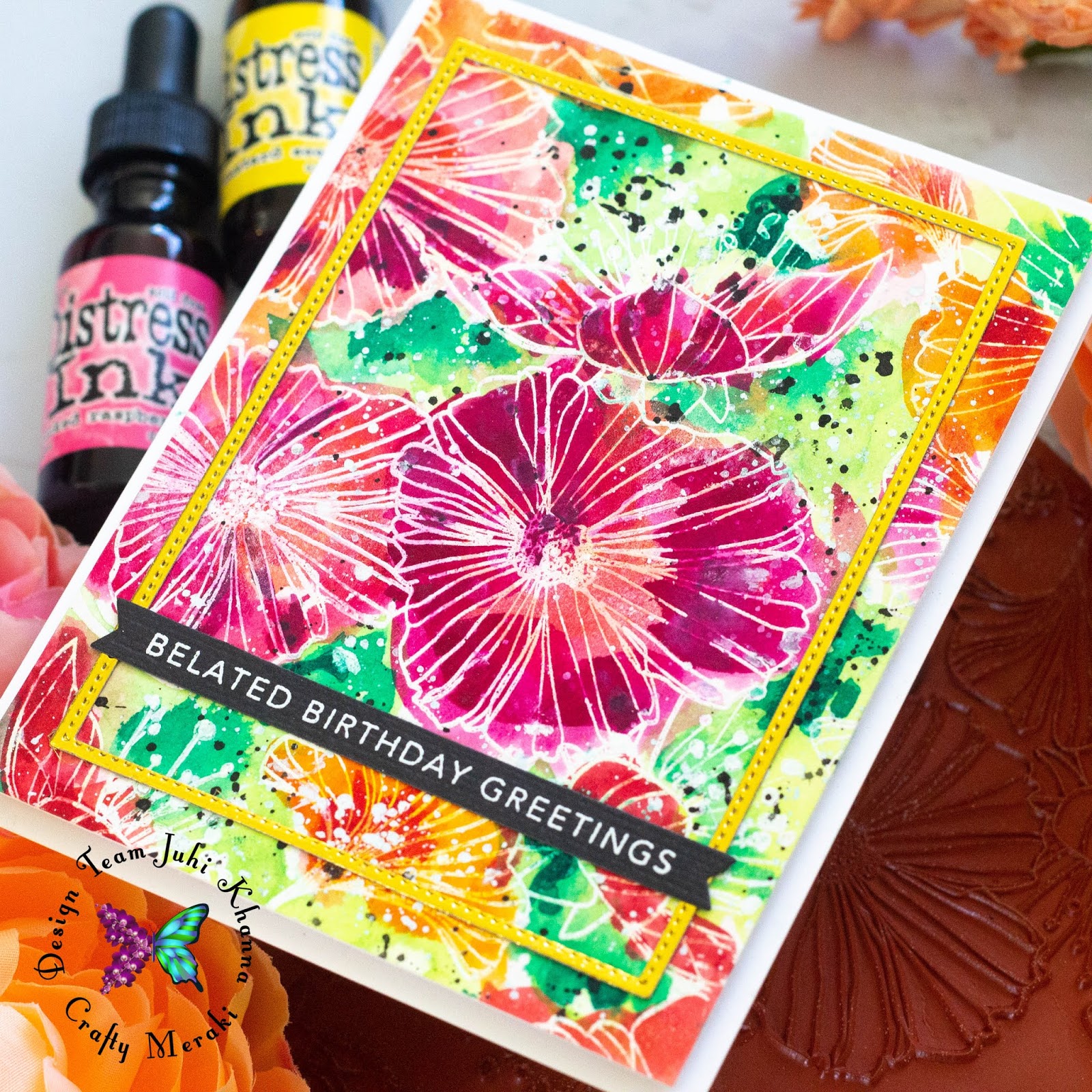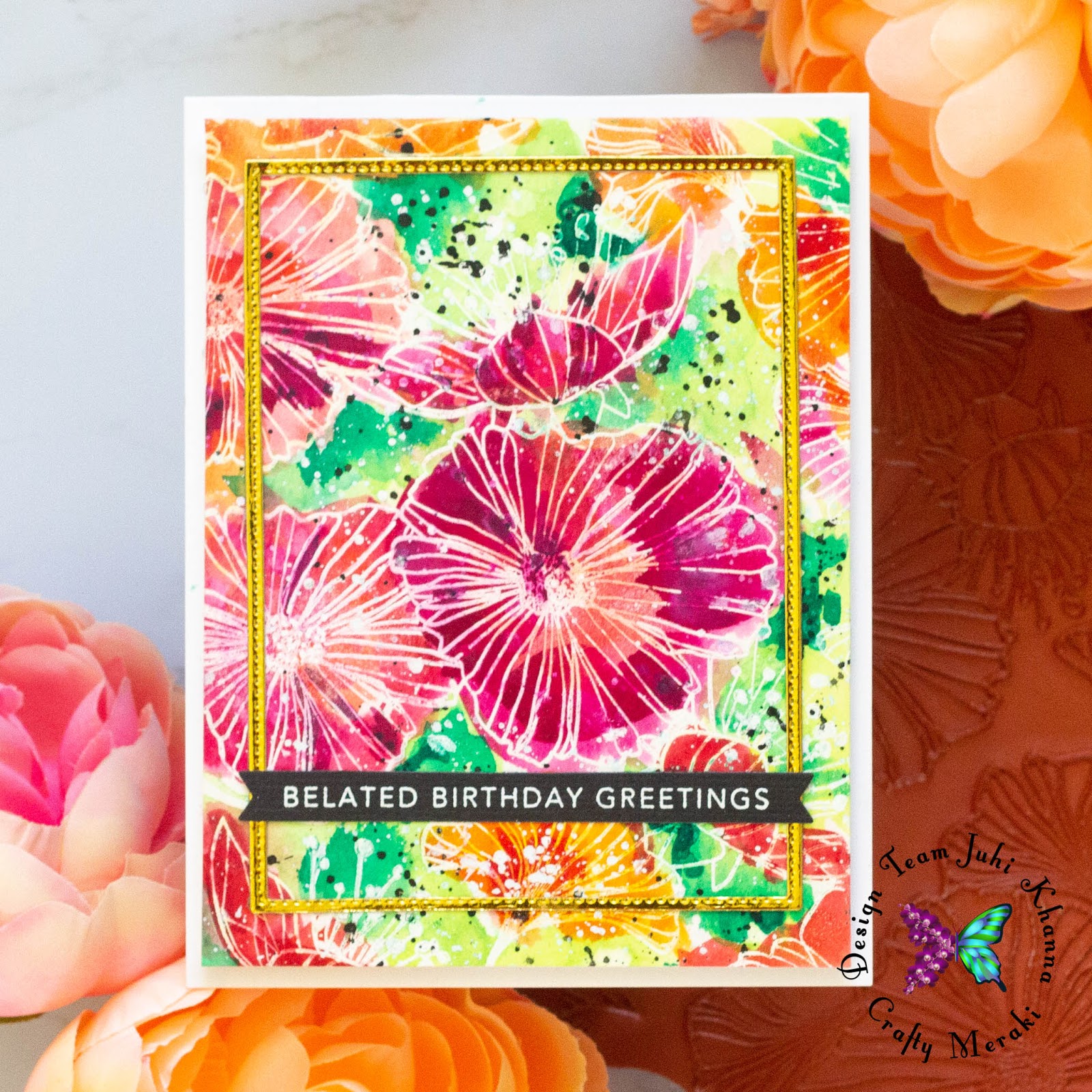 Hey there everyone, this is Juhi. Today, I'm sharing a couple of cards using the MFT Stamps Loosely Lined Flowers Background Stamp.
