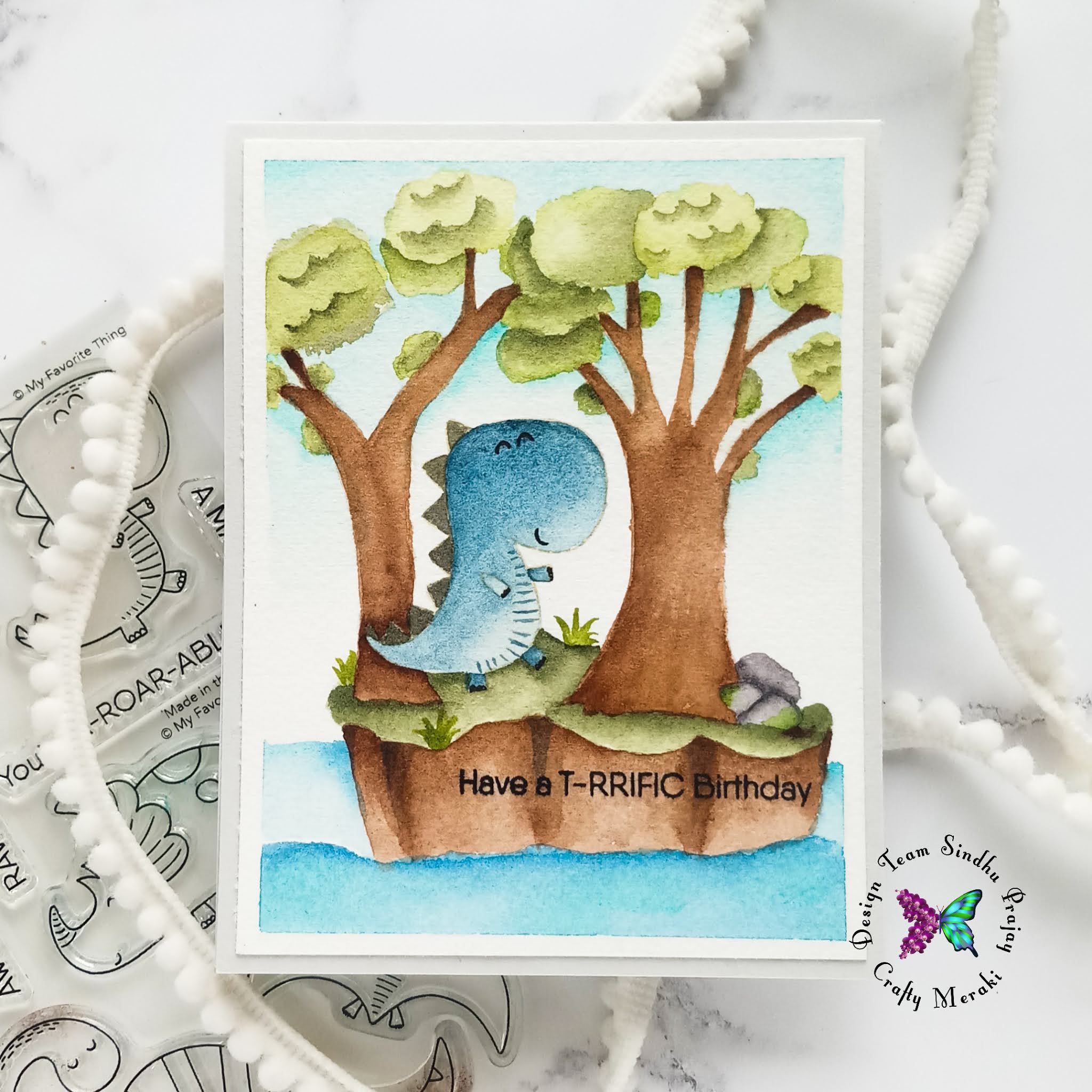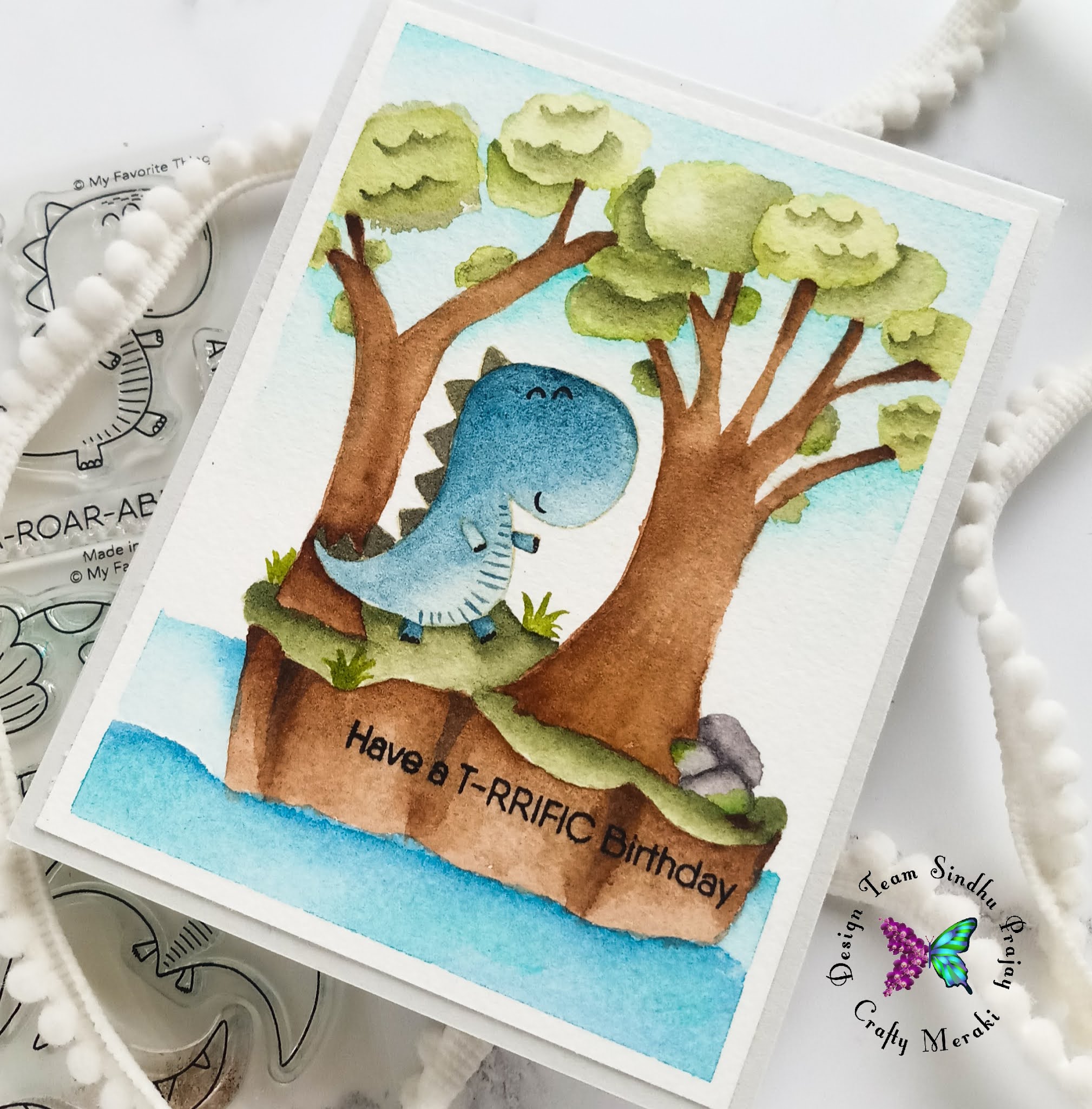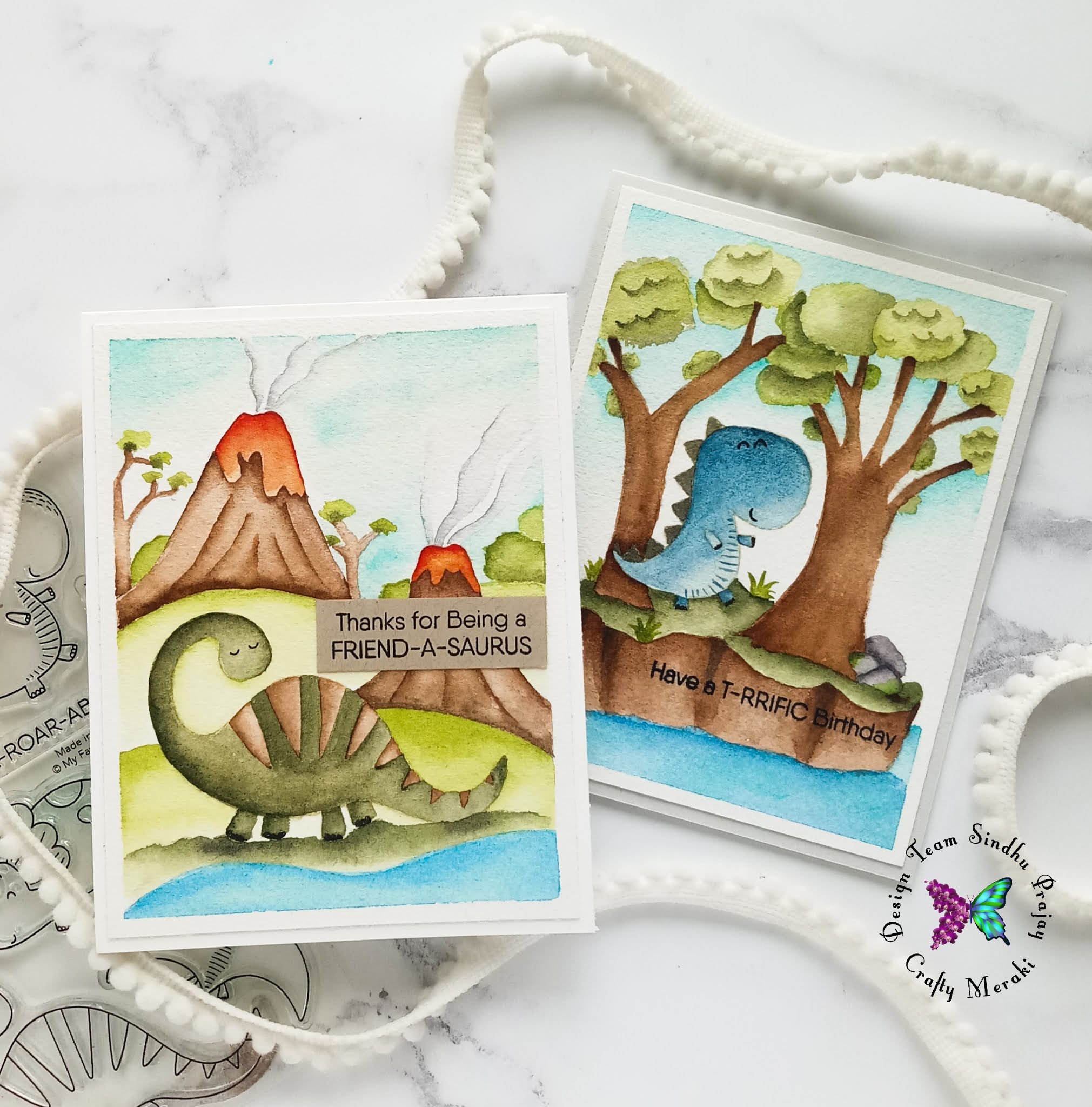Hope you are all doing great. I have two super fun cards to share with you today. I used 'A-roar-able Friends' stamp set from MFT for both my cards.