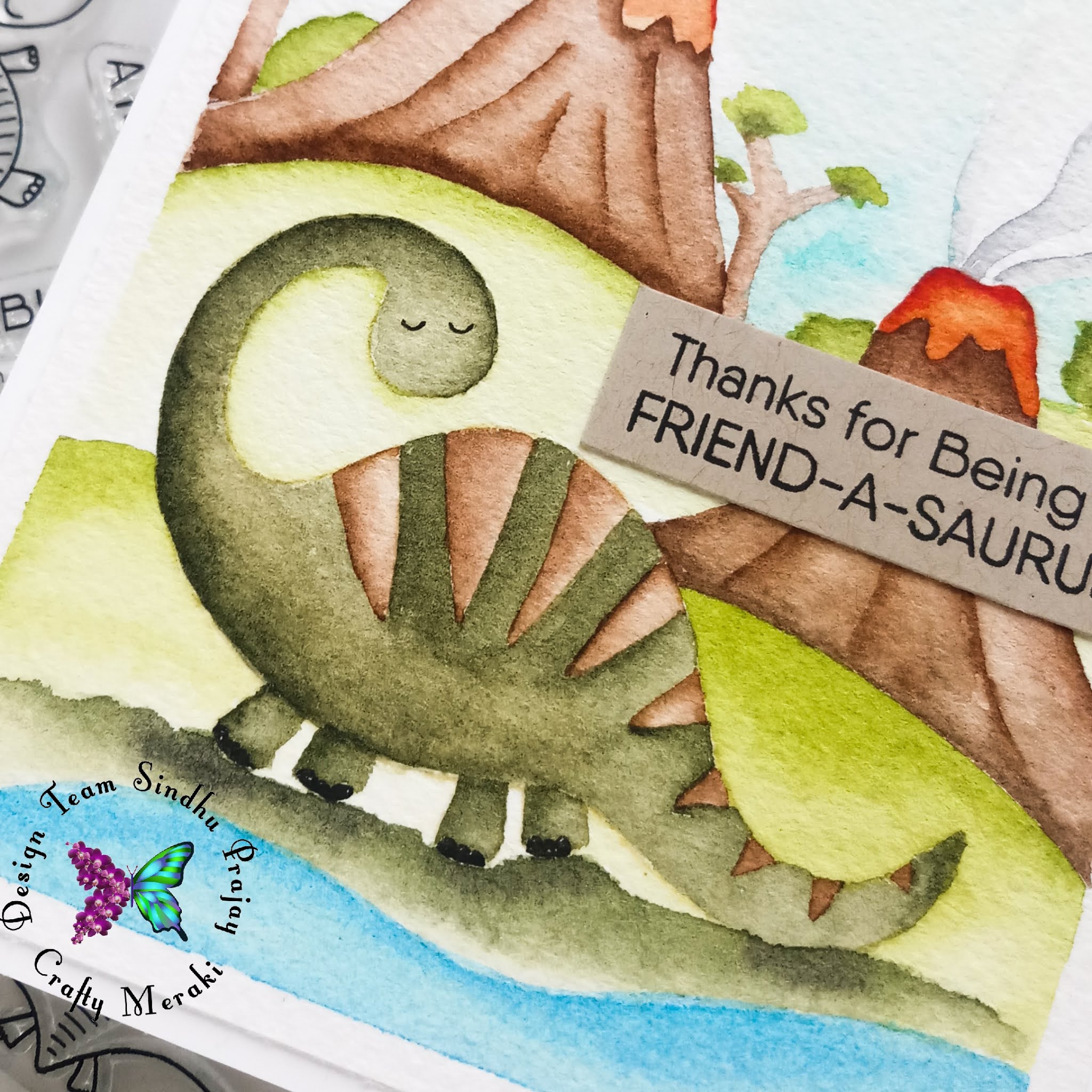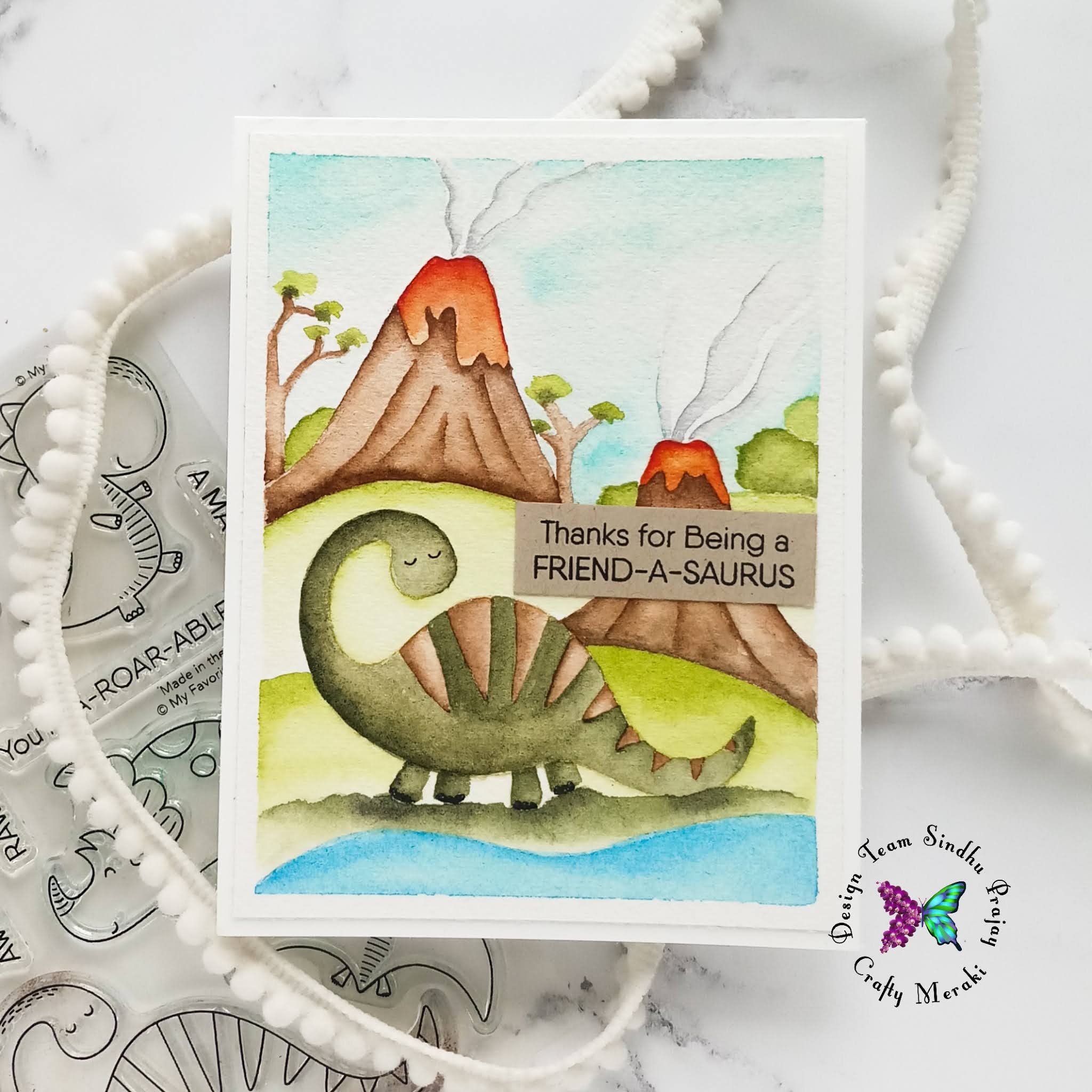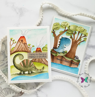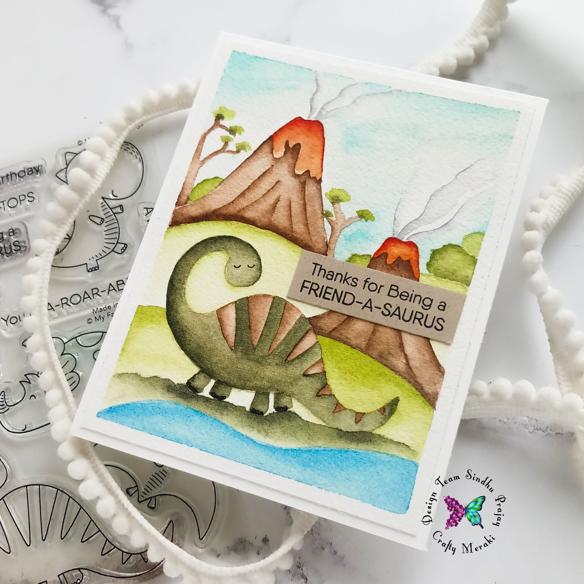Hope you are all doing great. I have two super fun cards to share with you today. I used 'A-roar-able Friends' stamp set from MFT for both my cards.