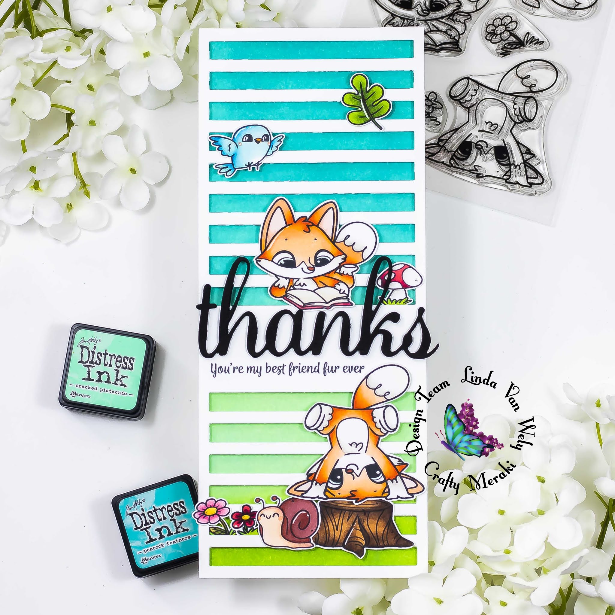 Hi there friends! Linda here today at Crafty Meraki sharing a fun slimline card that I created with the amazing To-tail-ly Awesome stamp set and the gorgeous Bar-None Slimline die!