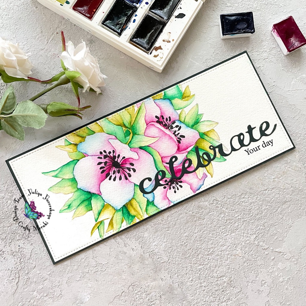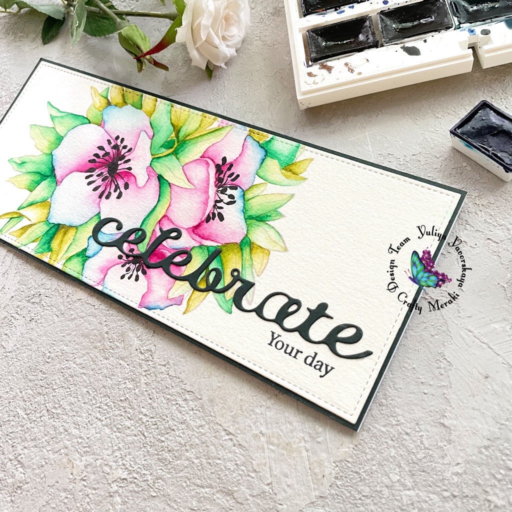 Today I am sharing a card featuring a wonderful floral set Elegance from a new anniversary release from Crafty Meraki.
