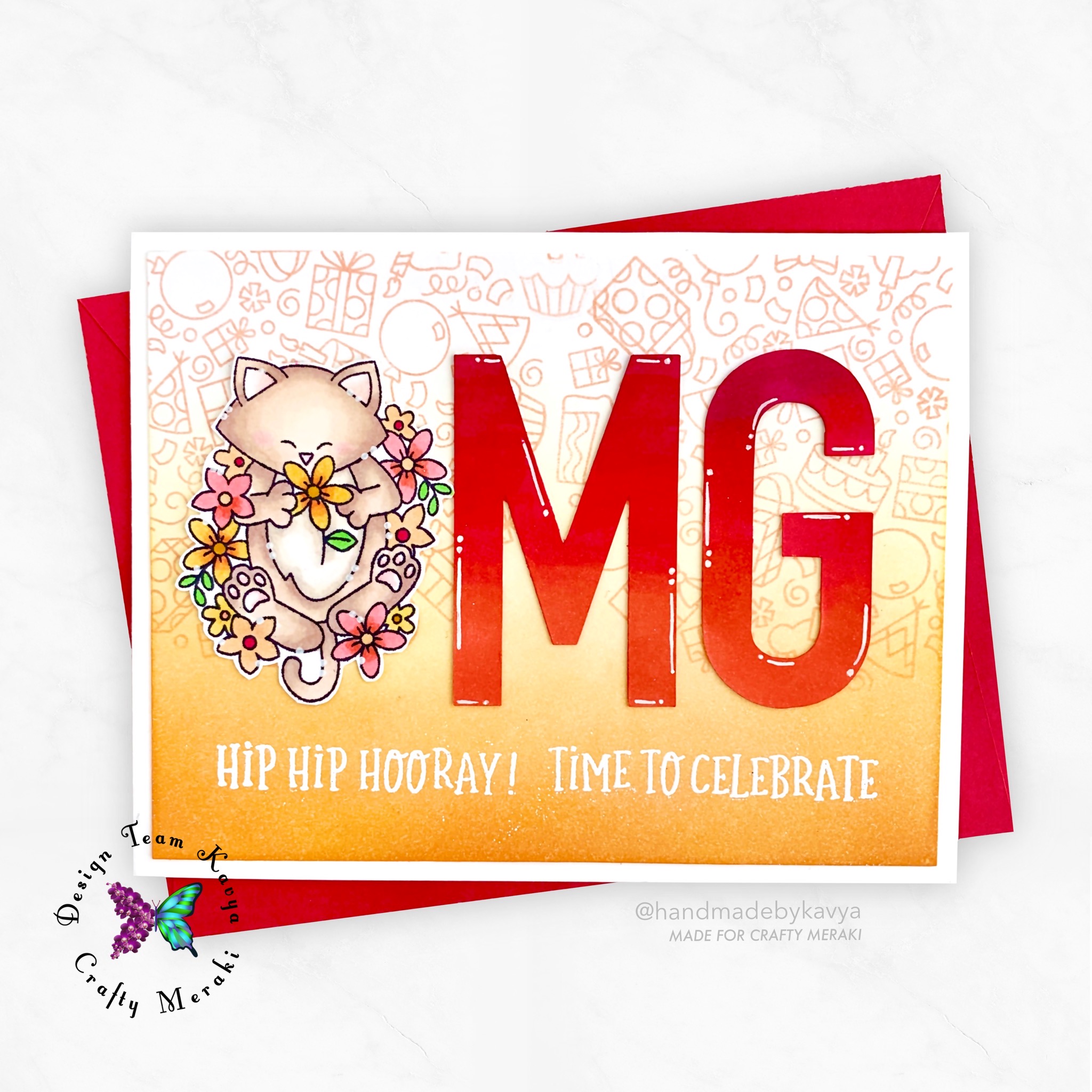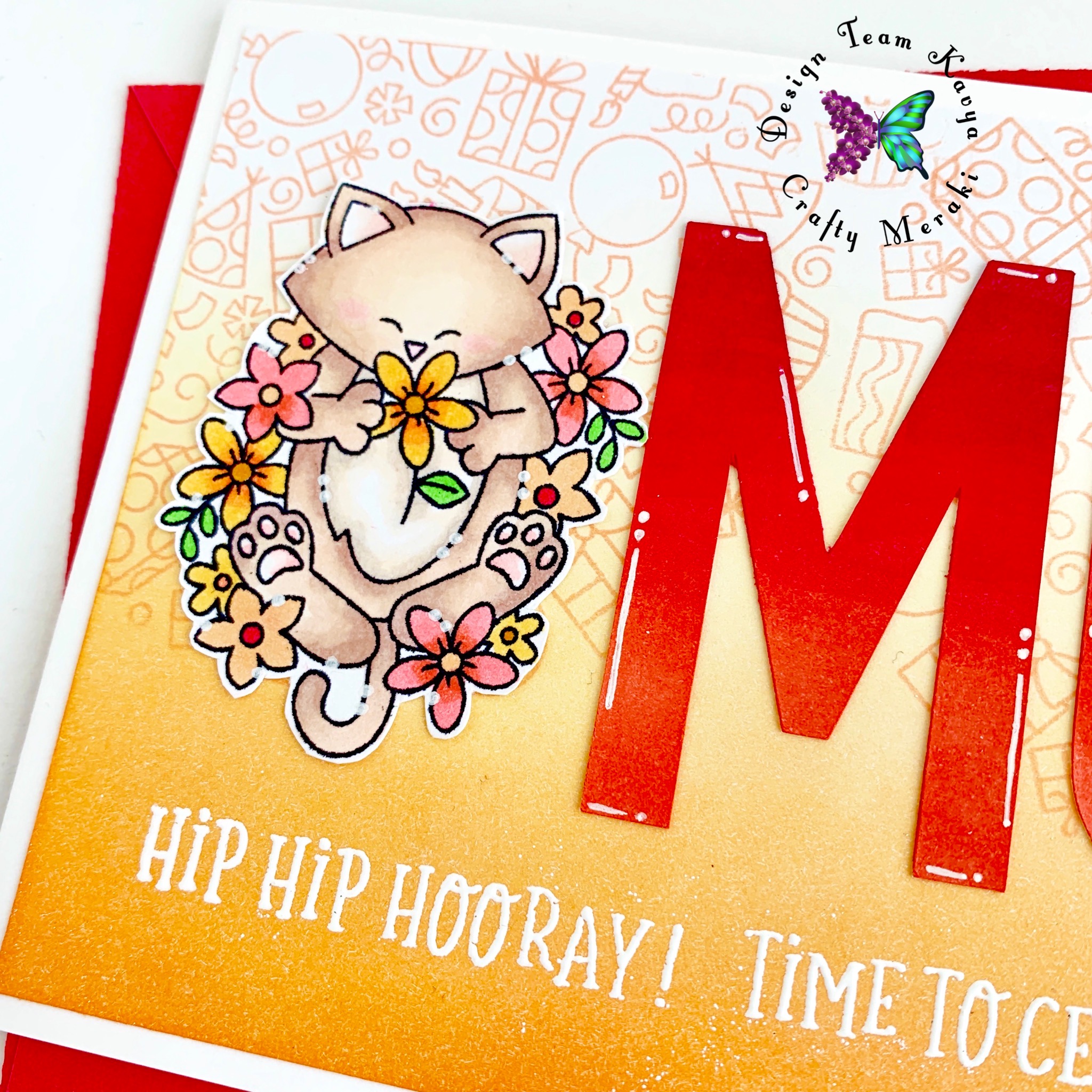 I hope everyone is safe and sound! I am back with yet another way to use Newton Nook's Flower Garden stamp set without having to create elaborate backgrounds. I like stamp sets that are versatile and have endless uses and this one is definitely one of them! When I first got the stamp set, I liked how the cat formed a perfect '0' with the flower bed. This image can be used in countless ways as a substitute for the alphabet 'O' or the number '0'! Here is one such way I used the image: