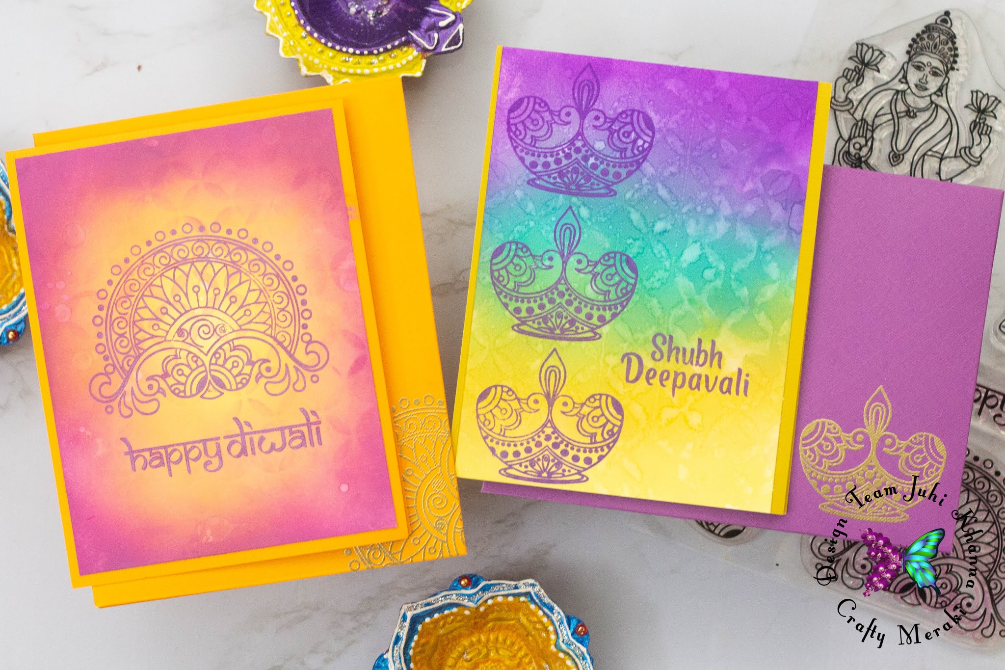 Hello friends, it's Juhi! I am back with my inspiration post for . I'm sharing 2 cards I have made using he Crafty Meraki Happy Diwali Clear Stamp Set.