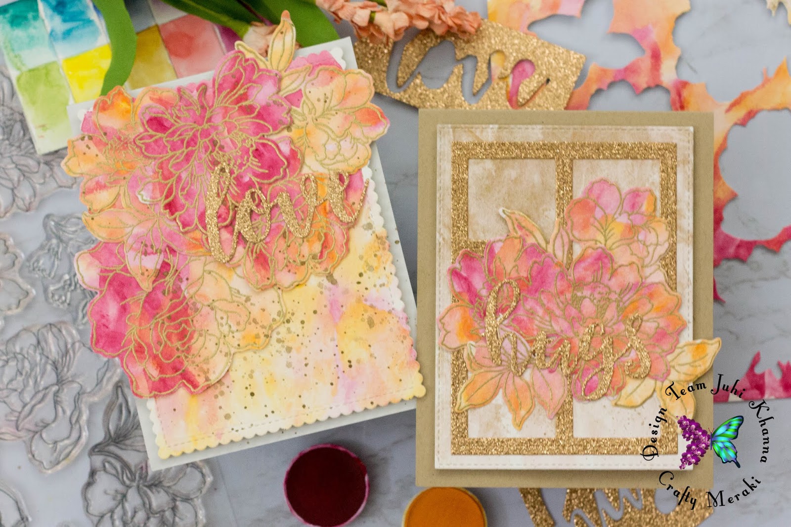 Such gorgeous cards! I love the gold and the pink shades a lot! And you make watercoloring look so easy, guess I have to try this technique :) Thank you for the steps and pics Juhi! :)