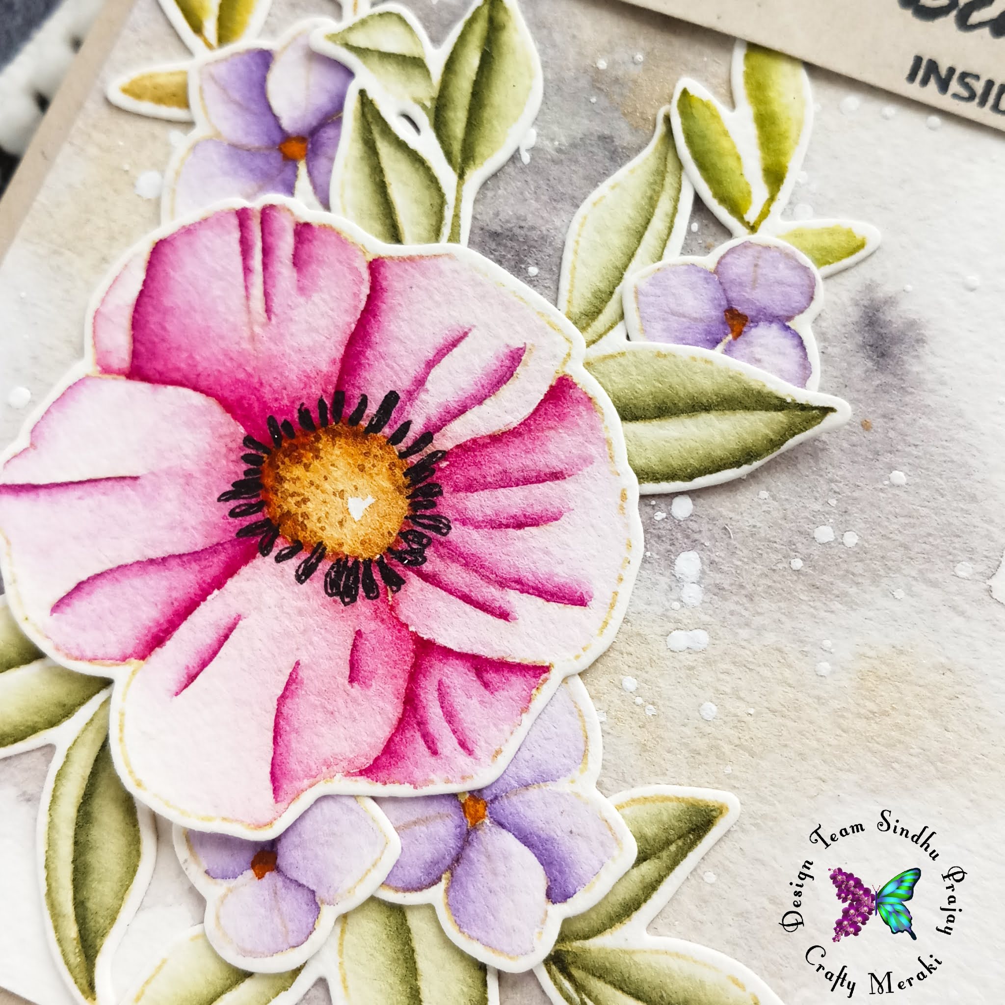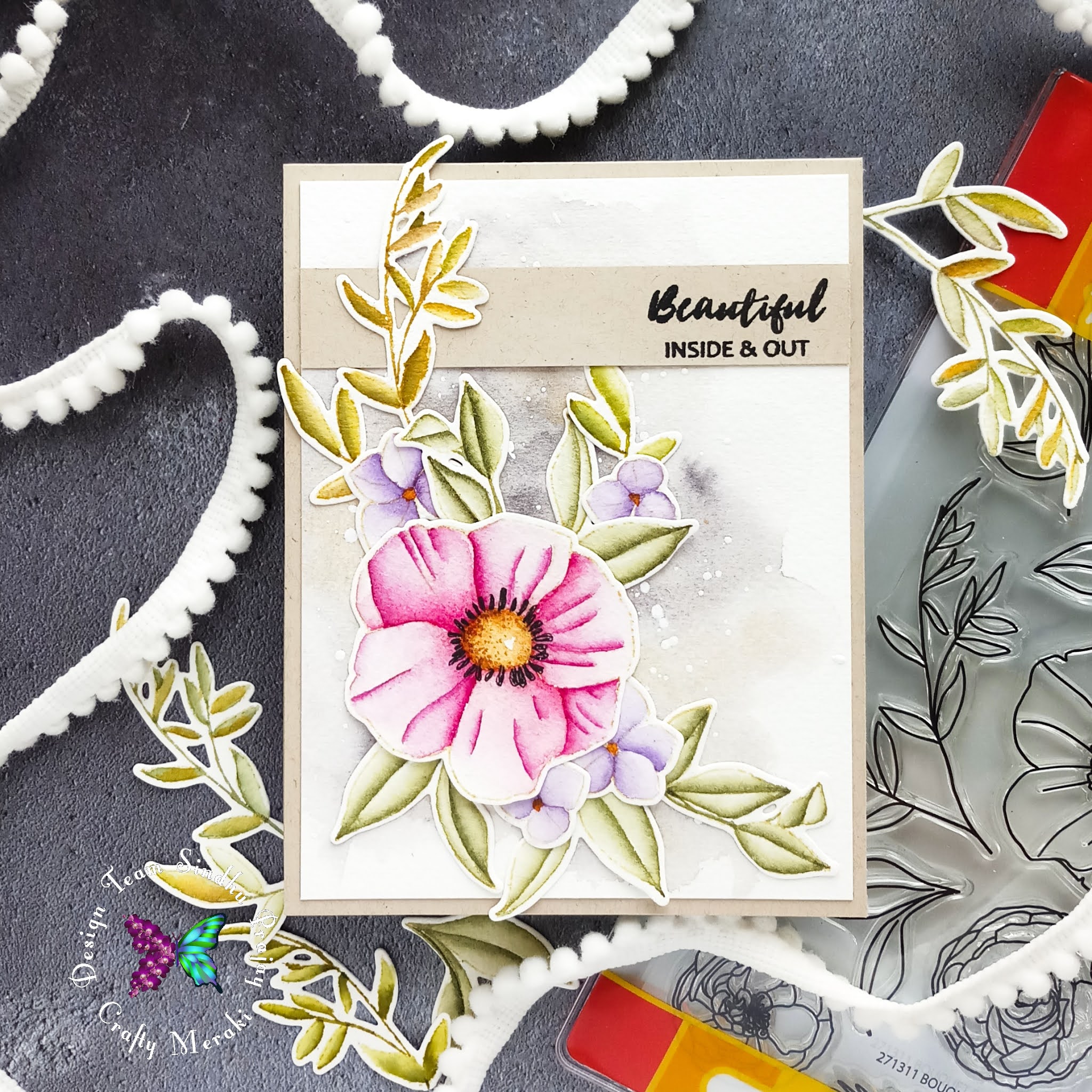 I stamped the sentiment from Altenew 'Paint- A- Flower Anemone' on a strip of kraft cardstock and adhered it on the panel. I adhered the panel on a cardbase and finished the card.
