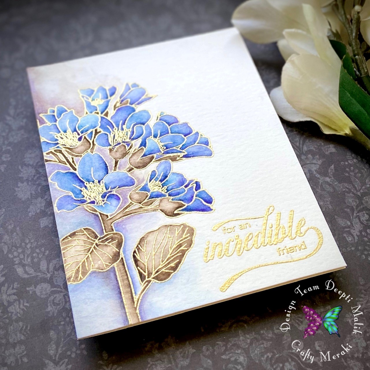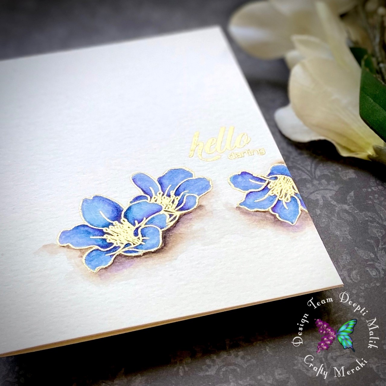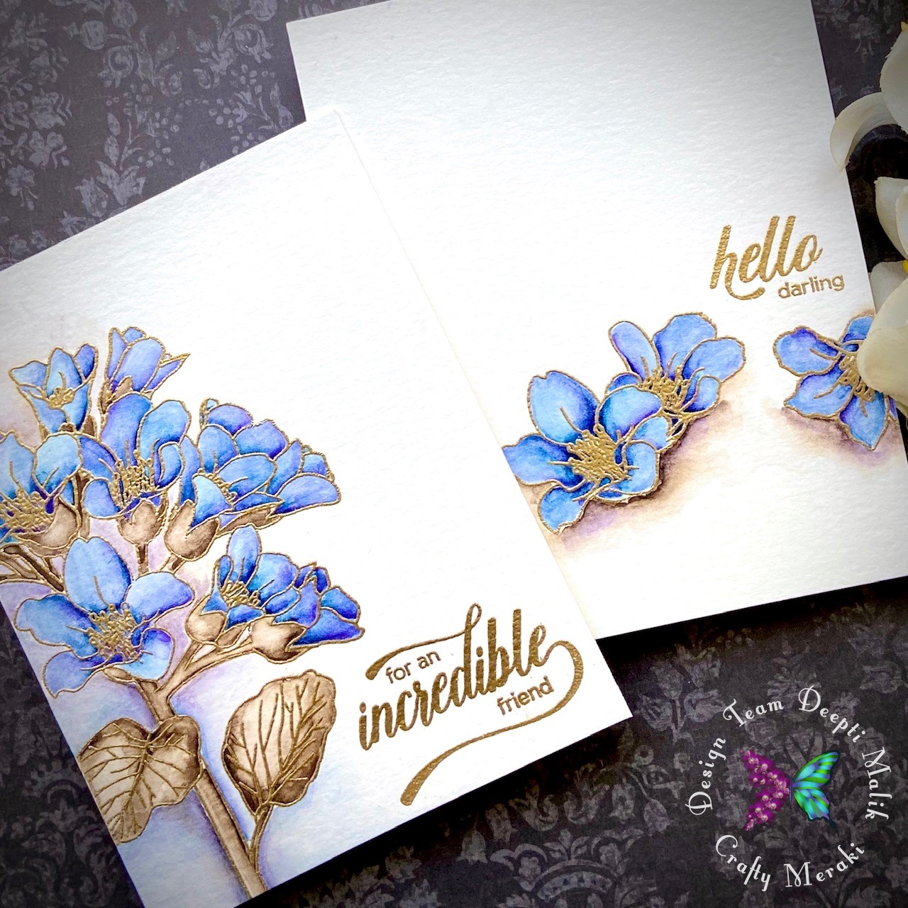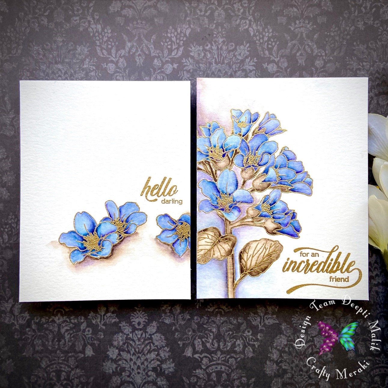 Hello friends! I am back with my Crafty Meraki inspiration post. Today I have made a couple of cards using Altenew's Bergenia's Builder Stamp Set. The flowers in this set are simply gorgeous... be it the stem of flowers or individual flowers and I had to use both.
