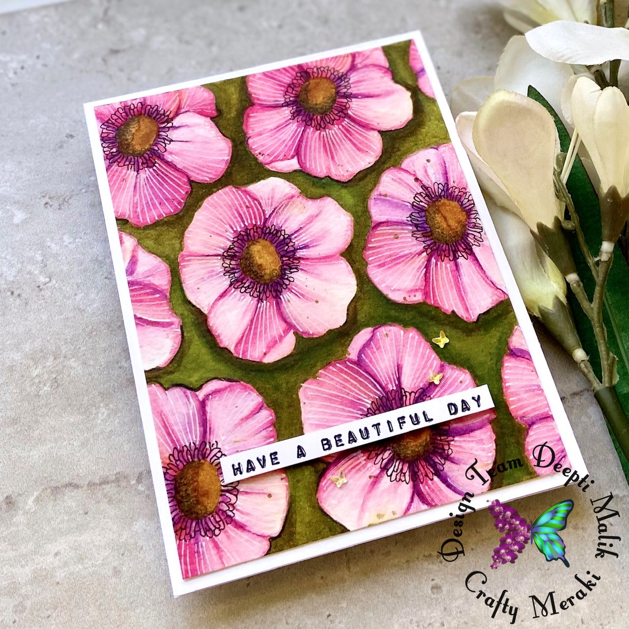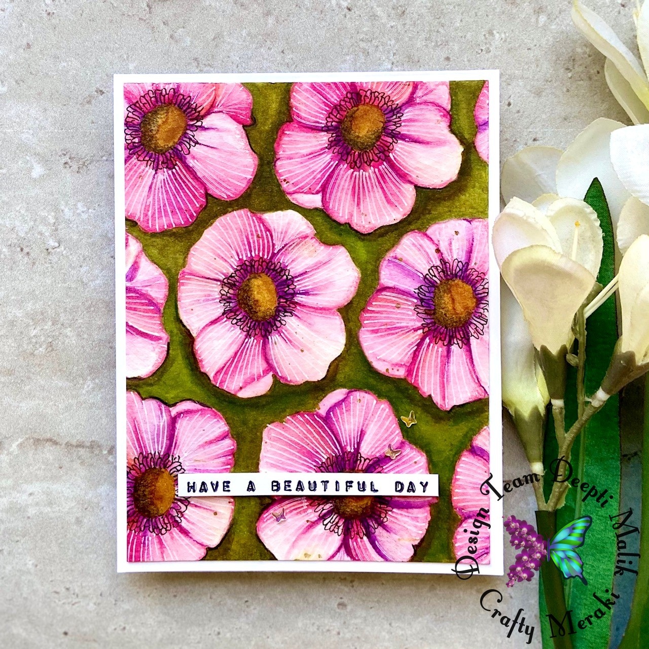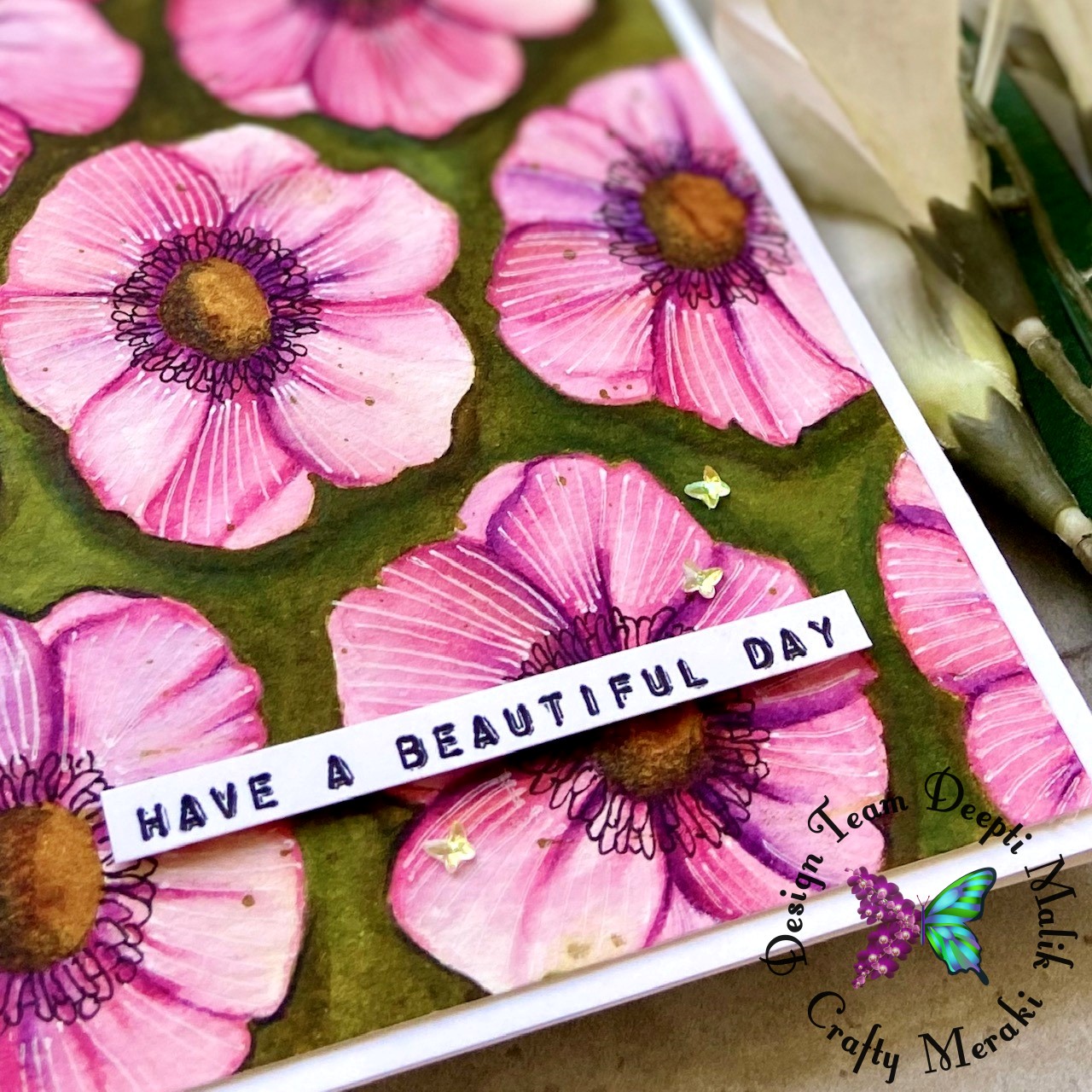 Hello friends! I am back to share more inspiration for Crafty Meraki. In today's post I am sharing another card I made using the products from Crafty Meraki "Special Edition Watercolor kit" I think I am hooked to this kit, every time I take it out I have a new idea. Isn't that just amazing :) Crafty Meraki Kit has goodness of 8 brands all in one box. This kit has been thoughtfully put together and it will provide you with unlimited ideas to nurture your creativity.
