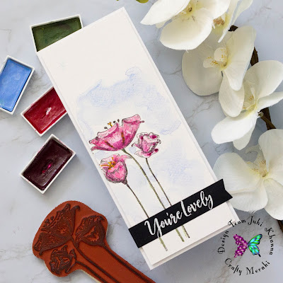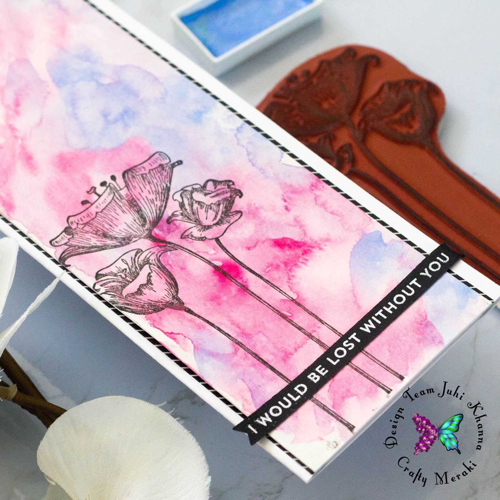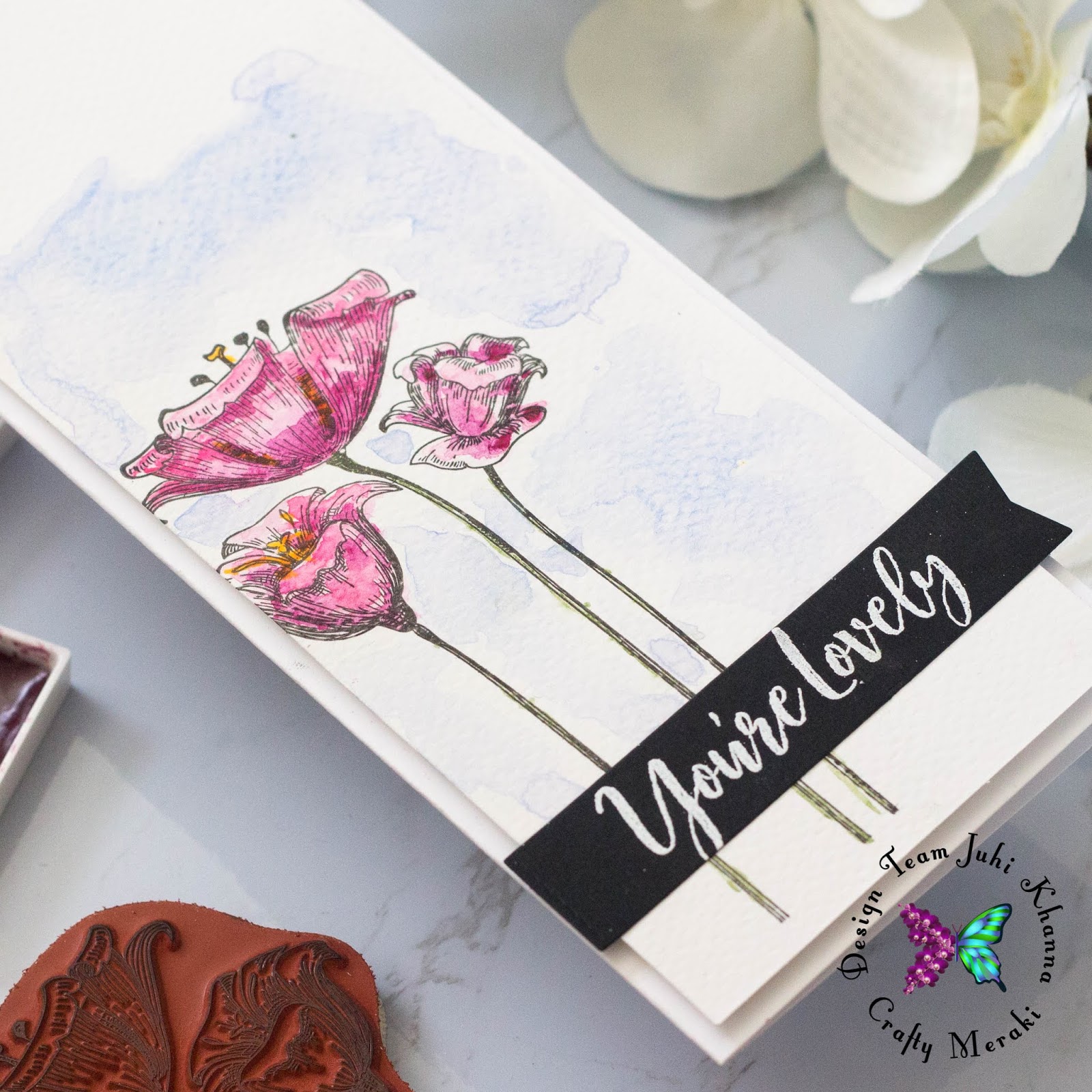 Hey there, it's Juhi. Today I'm sharing a trio of slimline cards featuring stamps from the latest floral release from MFT Stamps. If you're like me and cannot resist floral stamps you shouldn't miss this release, it's filled with gorgeous designs, check out the full release here.