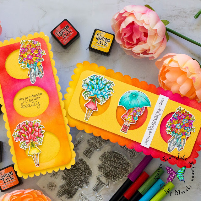Hello everyone, it's Juhi with my last post for July, can you believe July is almost over! Today, I'll be sharing two cards featuring the Loads of Blooms Stamp set by Newton's Nook. I must warn you, be prepared for some extremely bright colors, keep your sun glasses handy!