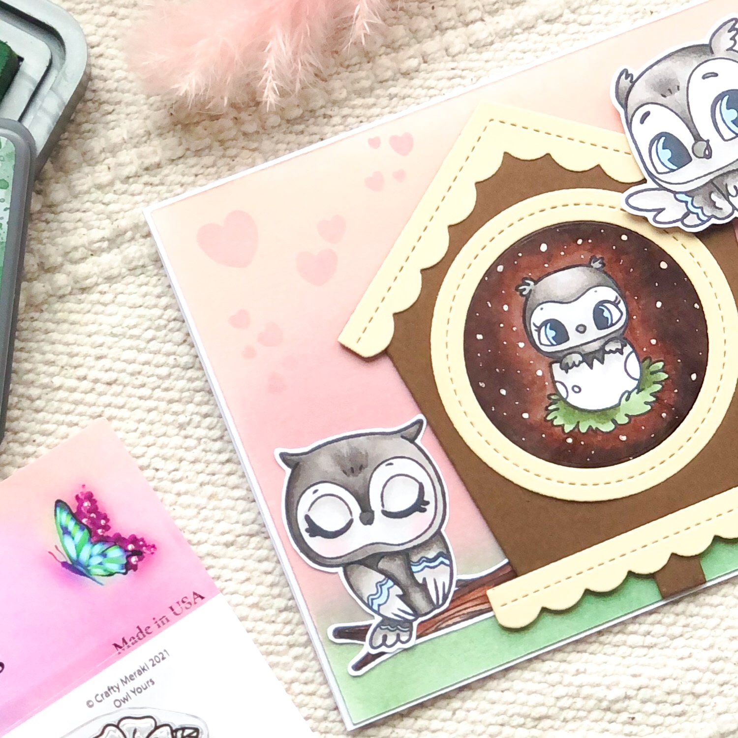 Hello everyone ! Yuliya is here with a new card featuring Owl Yours Stamp set from Crafty Meraki .