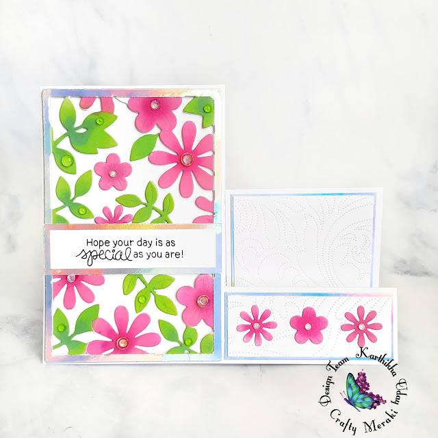 Karthikha here, and I'm here with a fun fold card today - a side step card. And I've used the Mini Slimline Jewel Bloom Die for this card.