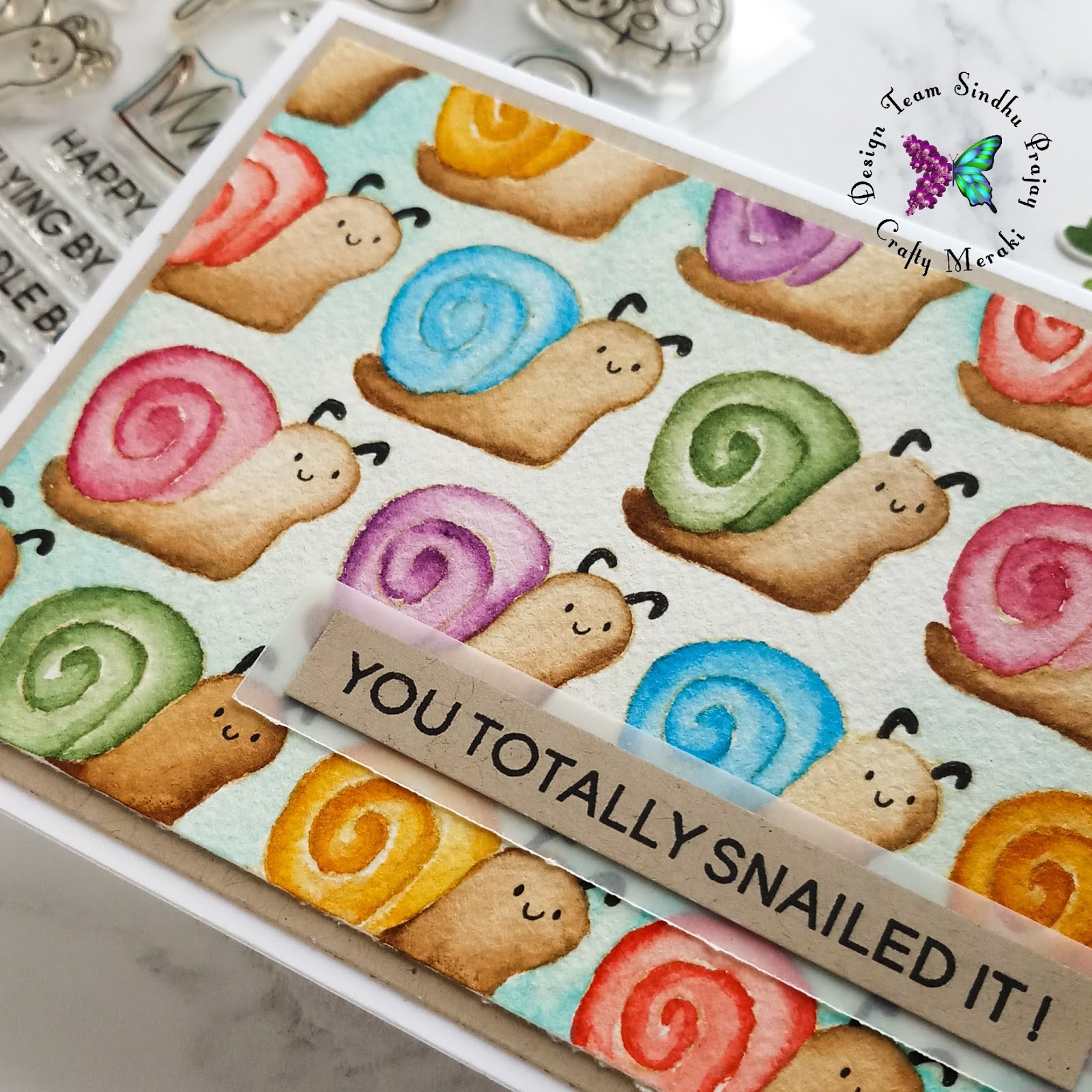 For my next card, I went a little crazy with the snails! Rainbow snails anyone? LOL!!