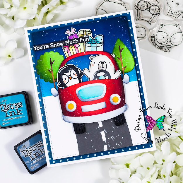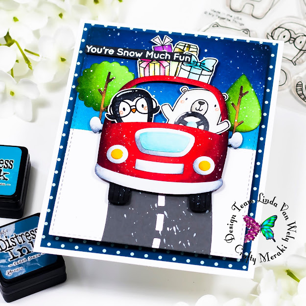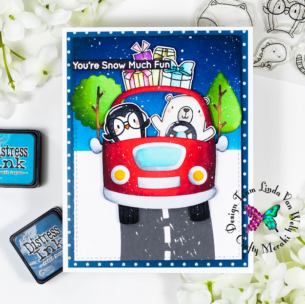 Hi there everyone! Welcome to a new blog post at Crafty Meraki! Linda here today with a fun new card that I created with some of the new products from My Favorite Things! These cuties are traveling in the snow! Make sure you check the store for all these fun products!