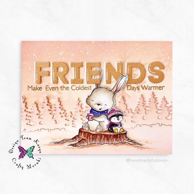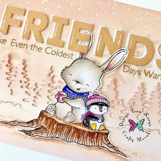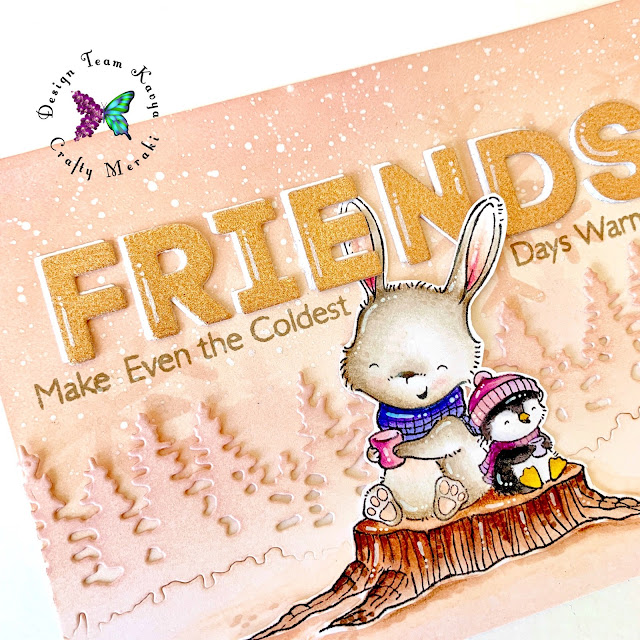 I am back at Crafty Meraki with a warm winter themed card using the new MFT Frost Loving friends! I love Stacey Yacula's illustrations and this one is just adorable... This quick card uses one of the stamped images with some alpha dies to create a card perfect for a special friend. Here is how I put this card together:
