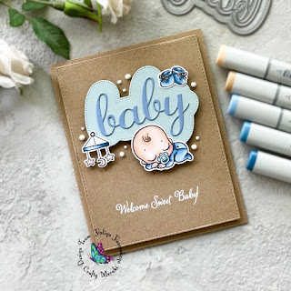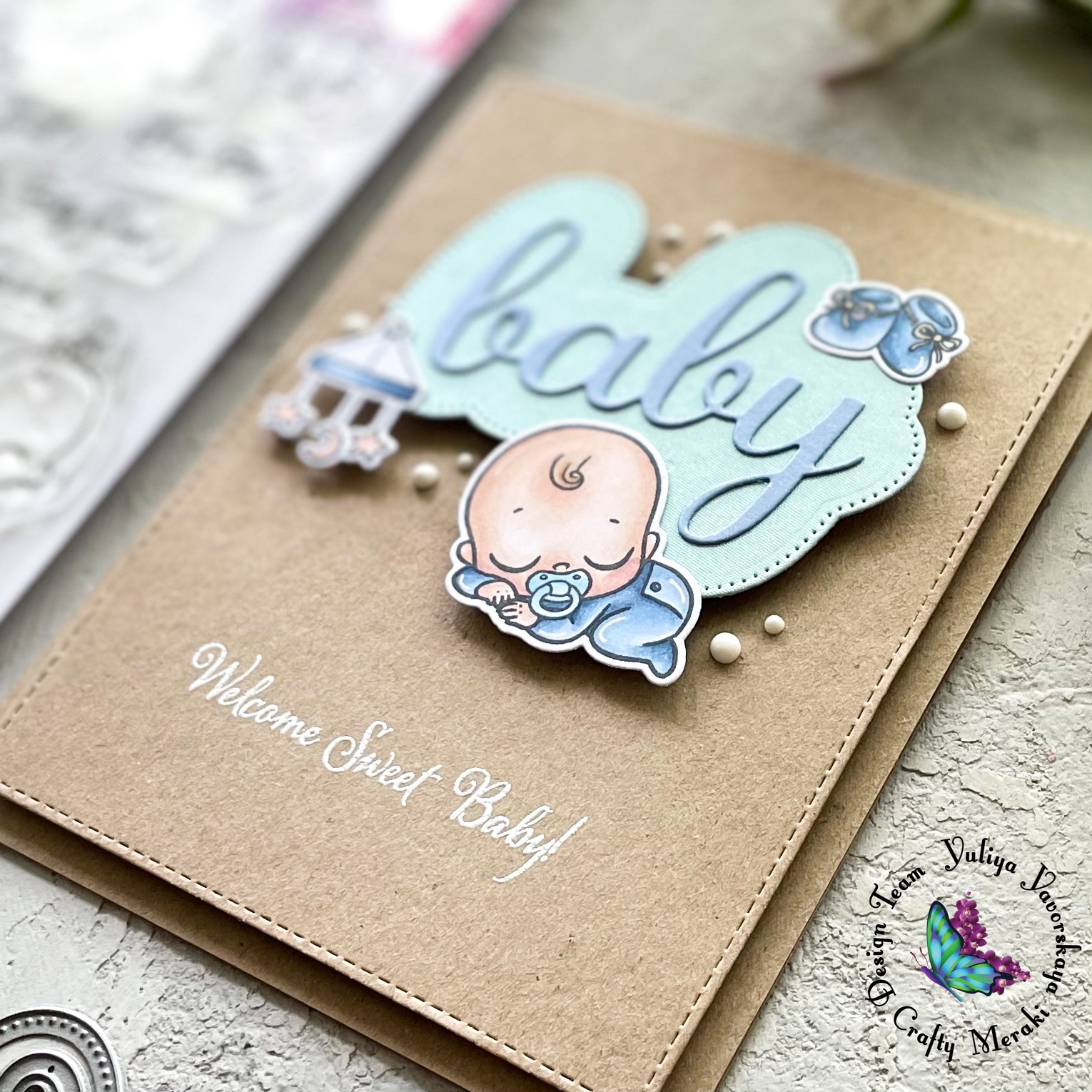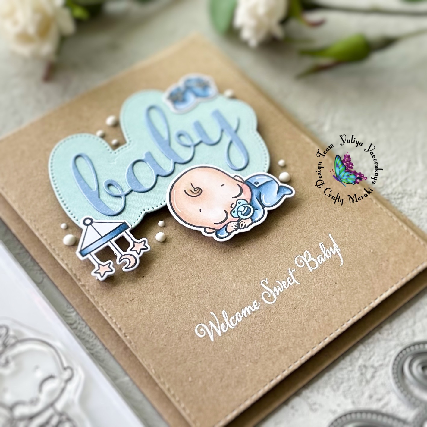 Yuliya is here with a new card sweet card featuring the newly released Oh Baby stamp set and Baby Word Shadow die. This darling set of sweet baby takes center stage on this cute card.