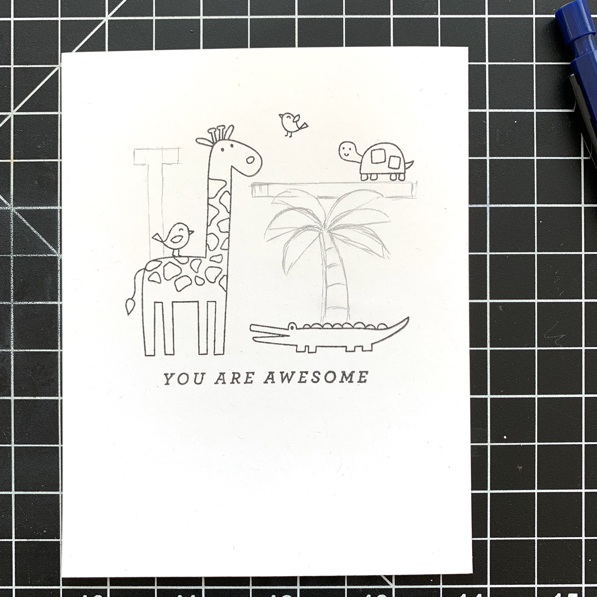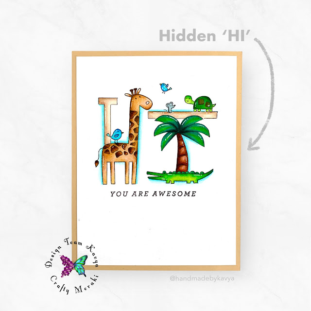 This card was a result of trying to come up with some typographical elements. If you look closer, the animals actually form the word 'HI' !!!