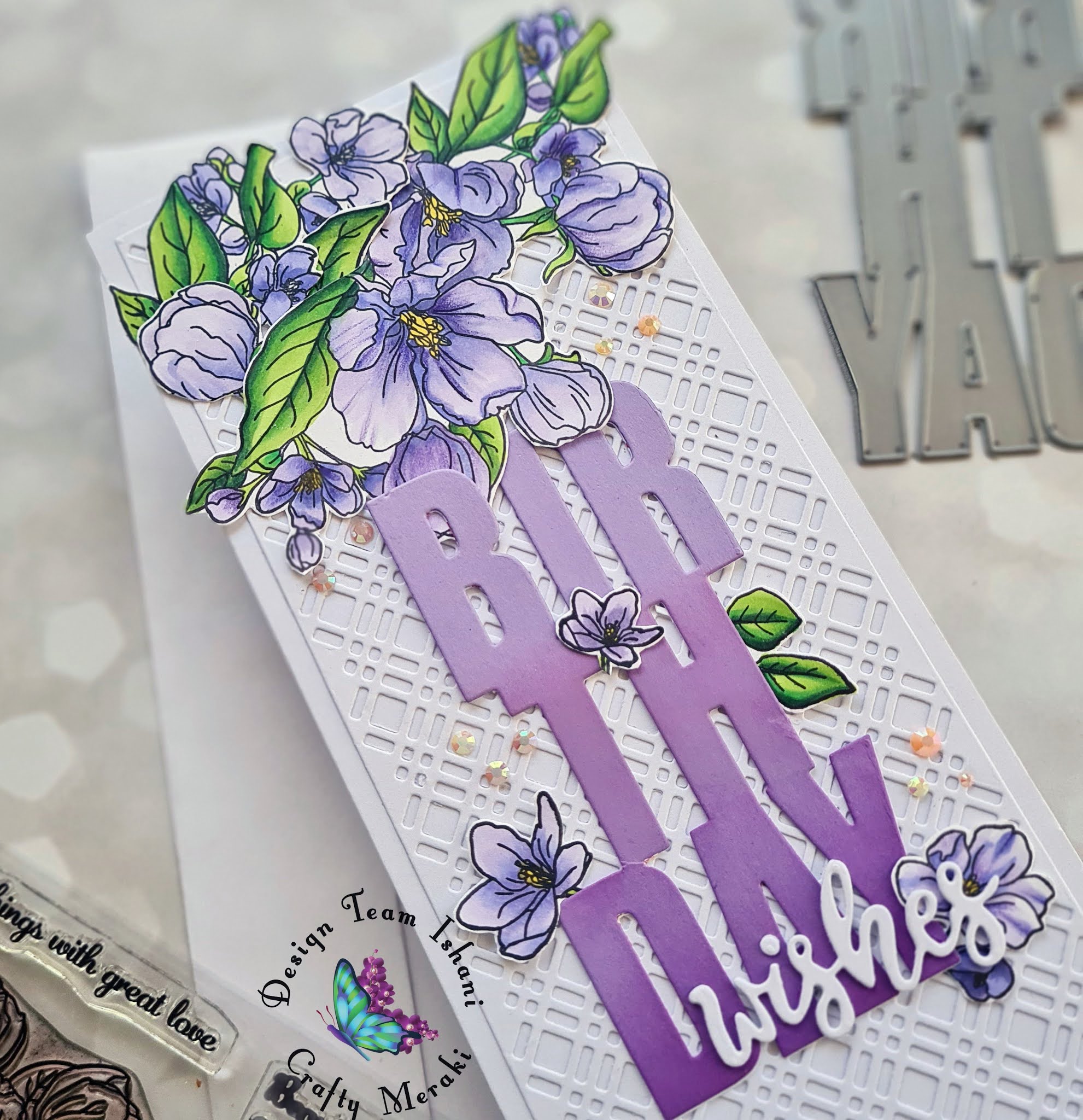 Today I am showcasing this beautiful floral stamp illustrated by Deepti Malik - You inspire me stamp set and Birthday slimline tag die from the Week 3 release.